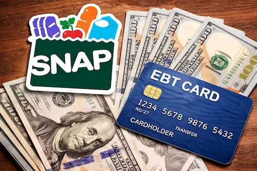 SNAP (food assistance): Covers groceries. Frees cash for rent, transportation, and probation fees. Approval takes 7–30 days. Amount varies by household size and income. Does not cover rent, utilities, or transportation.